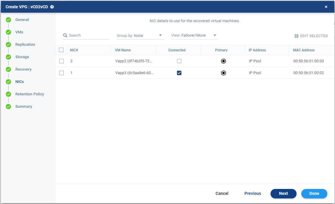 | 47. | Click DONE. The VPG is created. |