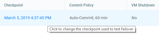 Select the checkpoint, then click OK. If the selected VMs were not protected when the selected checkpoint was taken, a warning will appear informing the user that these VMs cannot be recovered. If none of the selected VMs cannot be recovered, an error is displayed. |
