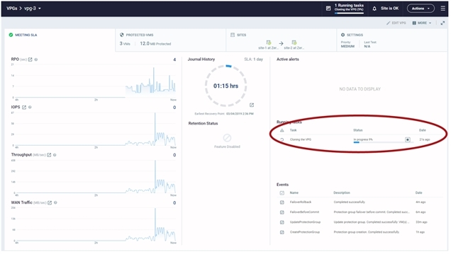 The cloning starts and the status is displayed in the VPG details tab.