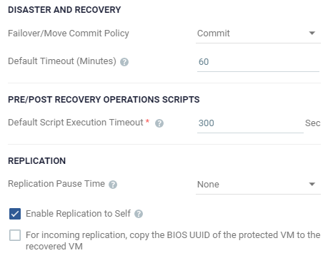 Enable Replication to Self: Enable the same site to be used as both the protected and recovery site. |