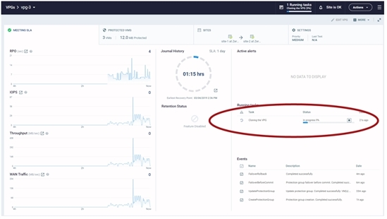 The cloning starts and the status is displayed in the VPG details tab.