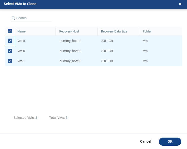 Select the VMs to clone. |