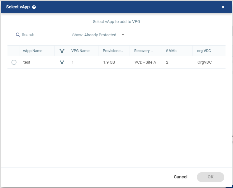 | 6. | Select the vCD vApp to protect in this VPG. |