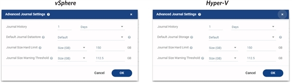 | Default Journal Storage (Hyper-V), or Default Journal Datastore (vSphere) | |||||||