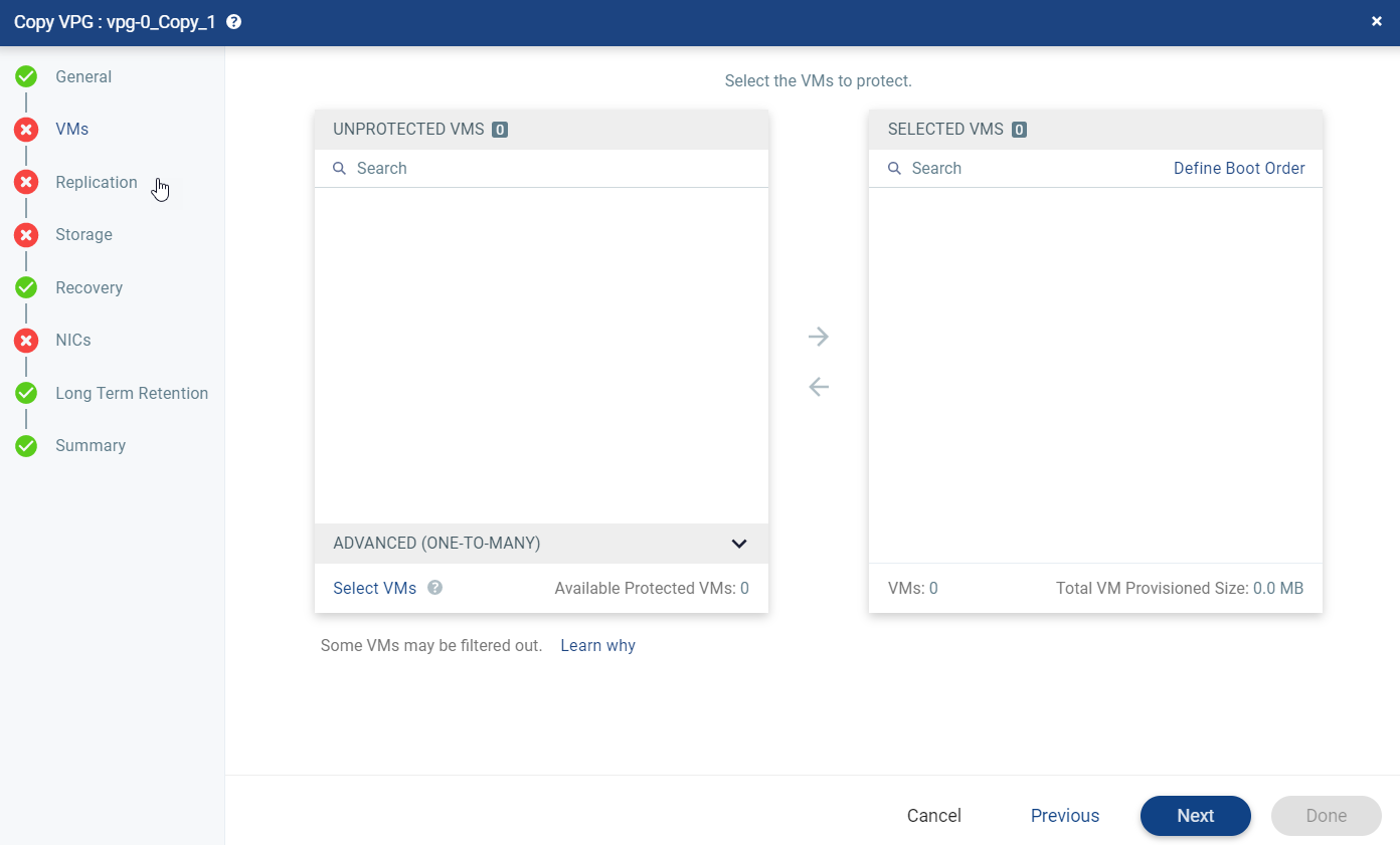 After defining VPGs, you can create a new VPG by copying the VPG-level settings of an existing one.