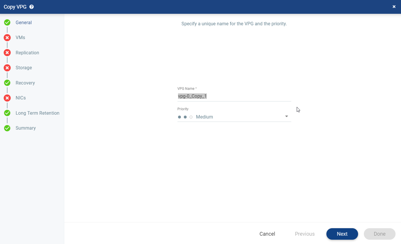 Modify the VPG name, or leave as is. The copied VPG name appears in this format - <[OriginalVpgName]_Copy_X>. |