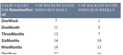ScheduleDayOfWeek | String | The day of the week when the backup is performed. |