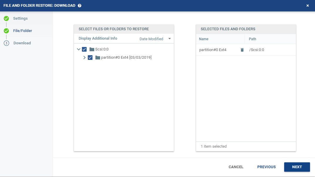 | Note: | Saving the files and folders to a network share is dependent on the browser used to display the Zerto User Interface and the settings for this browser. |