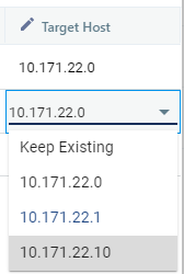 A drop-down list of available target hosts appears. Select the new target host.