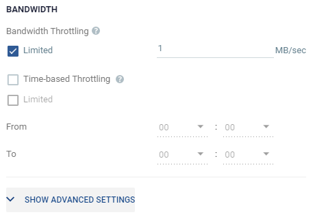 | • | When you select Bandwidth Throttling, by default, Limited is selected. |