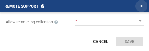| • | Never: Remote log collection is not allowed (default). If remote log collection is currently allowed, the remote connection will be terminated if you select this option. |