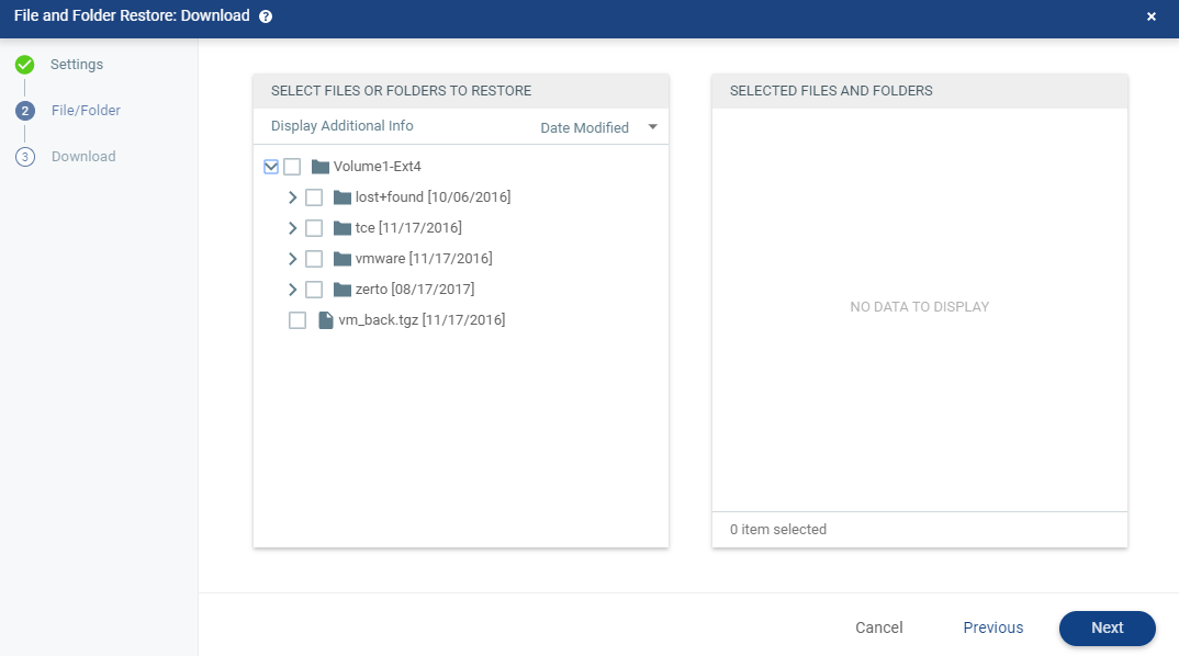 To start the download, continue to step 7. If you wish to download additional files and folders from the mounted VM, continue to step 4.