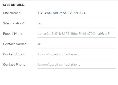 (AWS environments only) Bucket Name: The name of the bucket that was created when Zerto was installed. This cannot be changed. |