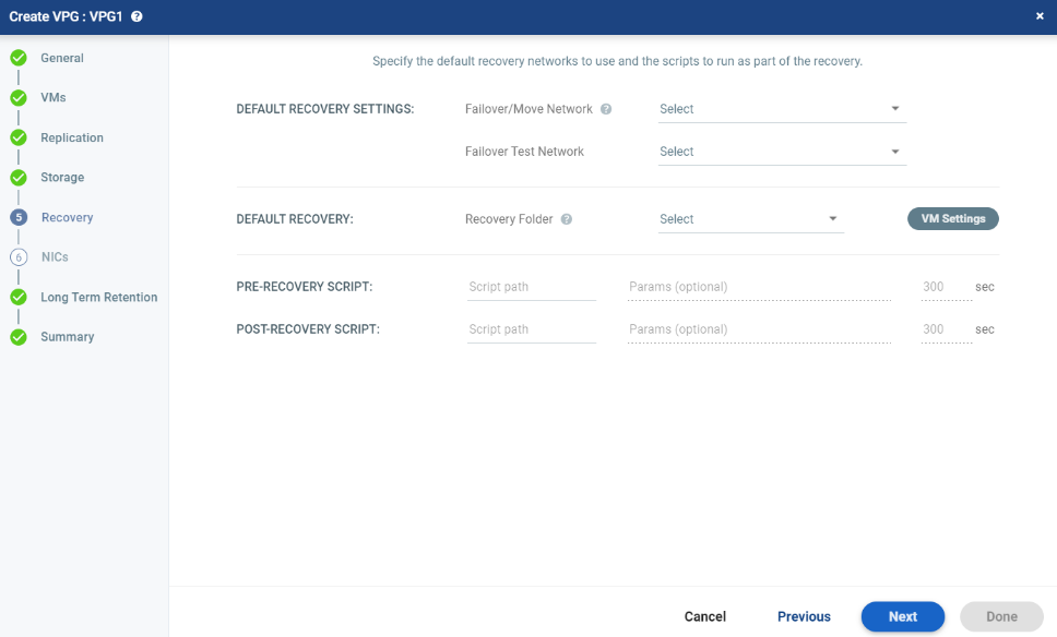 When a VPG is recovered to a Public Cloud, Long-term Retention is not available. |