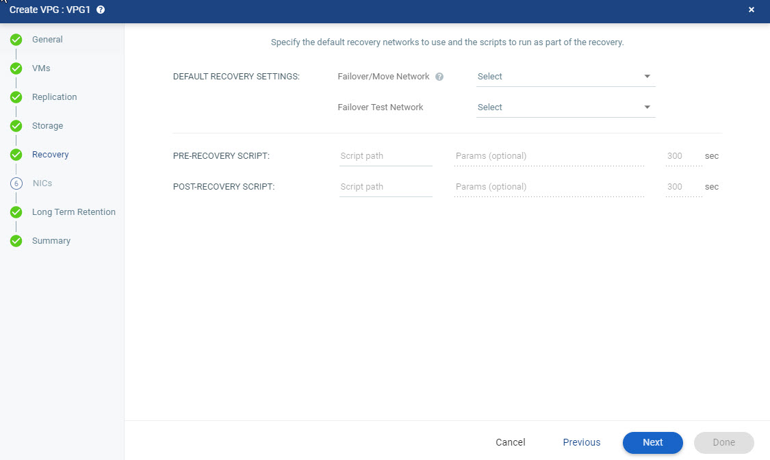 | • | Post-recovery Script: The information about a script that should run at the end of the recovery process. |