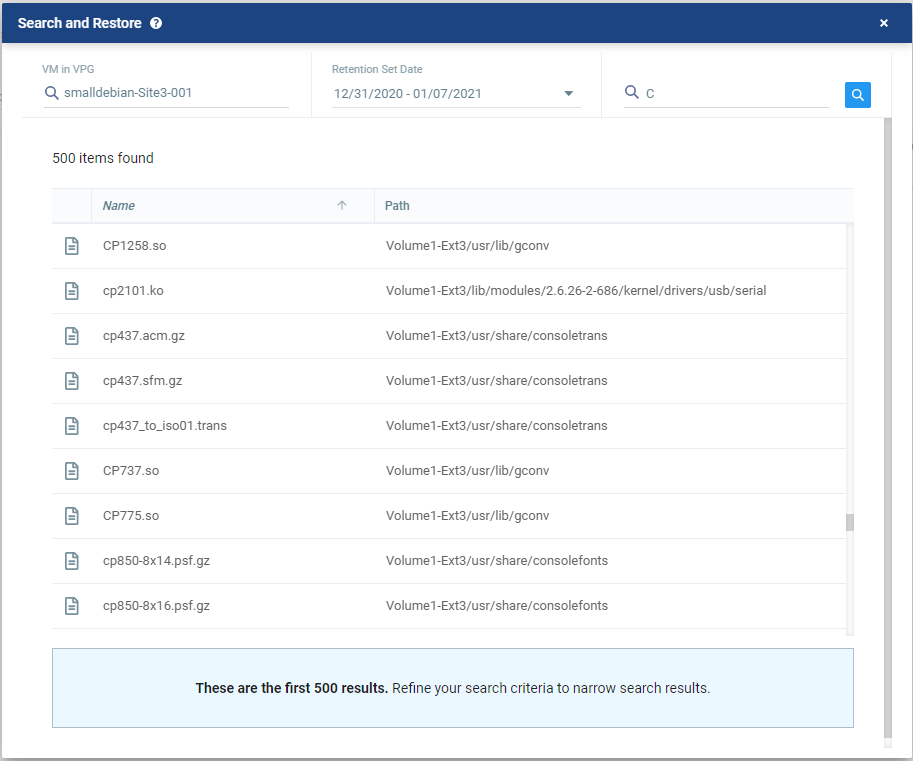 | 1. | In the Zerto User Interface select Restore > Search and Restore. |