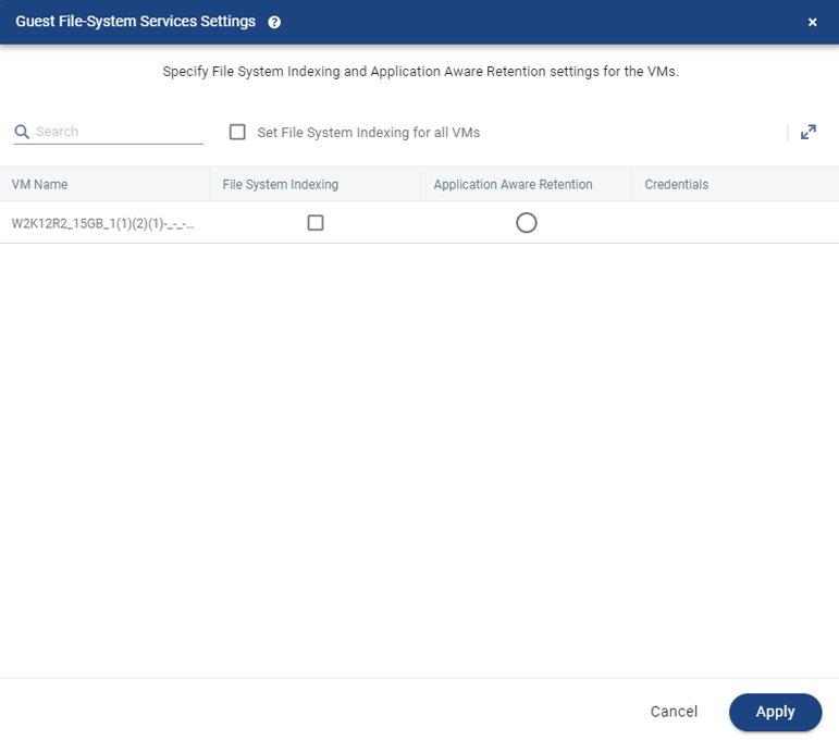| 2. | In the Guest Services area, you can enable File System Indexing and Application-aware Retention for the virtual machines. |