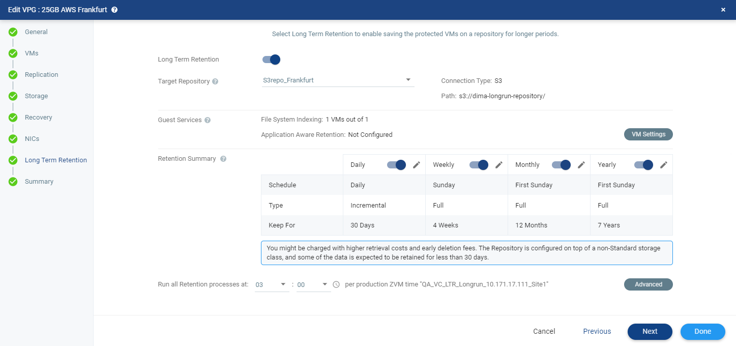 | 2. | Then, enable Application-aware Retention for the virtual machine. |