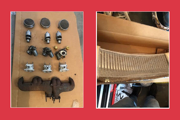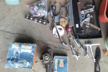 Numerous Lucas lenses, 1 Steering wheel, 1 Tachometer, nut and bolts etc.