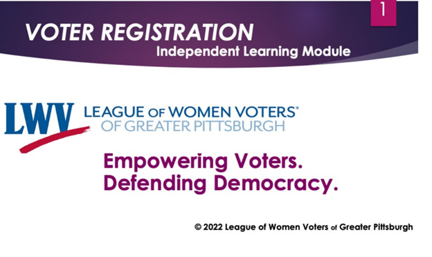 These short Independent Learning Modules will help citizens understand how important it is to participate in our Democracy by VOTING! The "Empowering Voters" Modules are perfect for coaching others to run voter registration drives or to learn the voting and election information voters need. The "Defending Democracy" Modules will offer information about Countering Mis- and Disinformation, Democracy 101, and