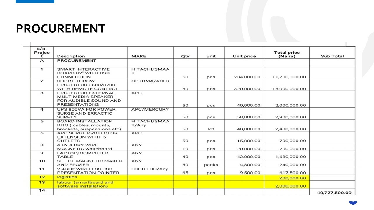 Project Phase 5 - Procurement (Click to Expand)