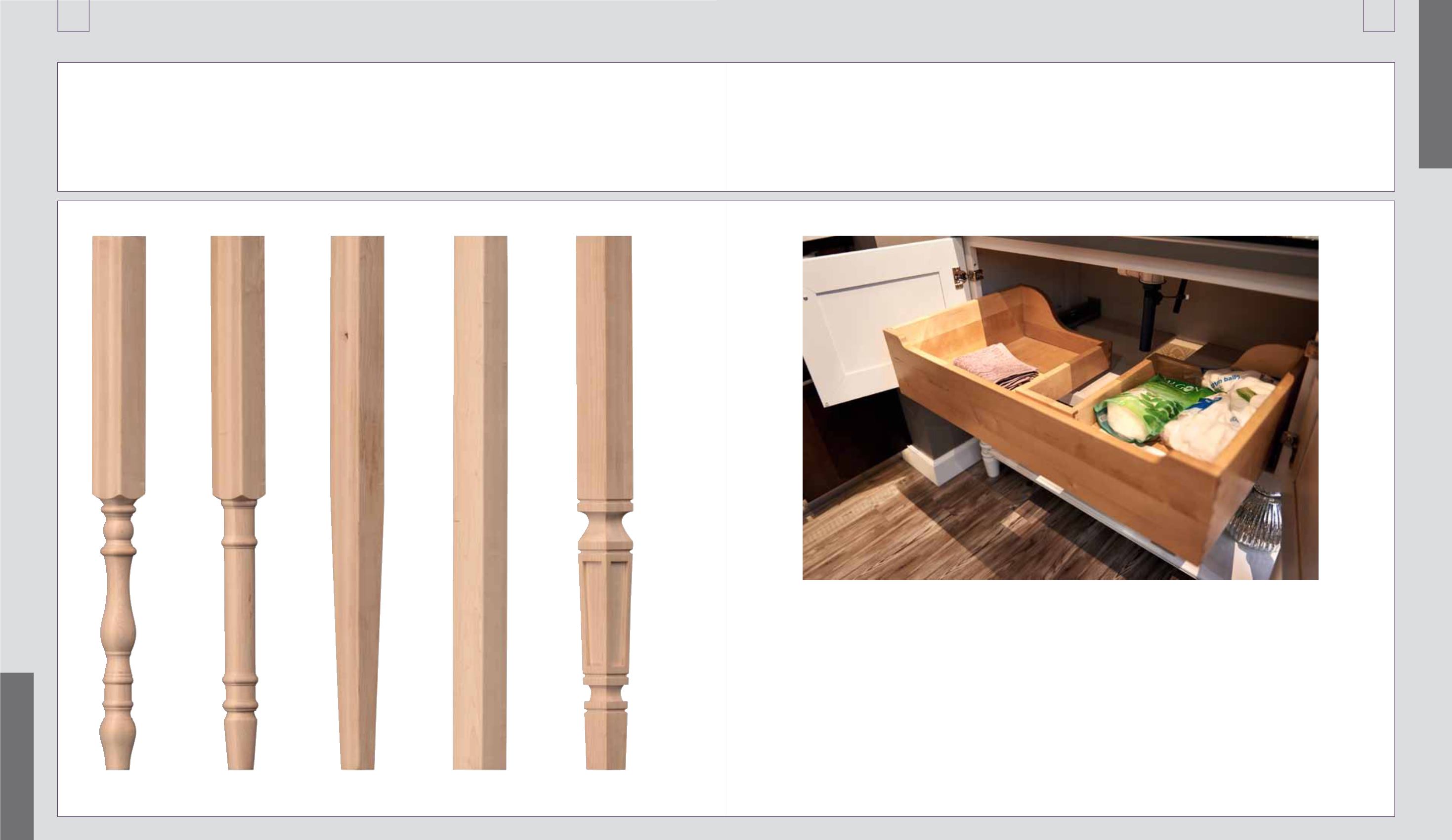 Console vanities are available with five leg options that enable you to create a beautiful furniture piece for the bath.