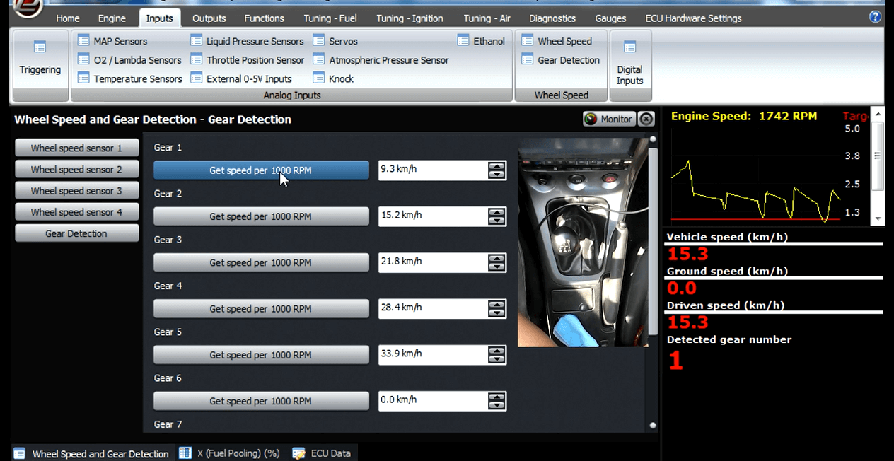 to (a) Inputs tab (b) select wheel speed (c) tick the check