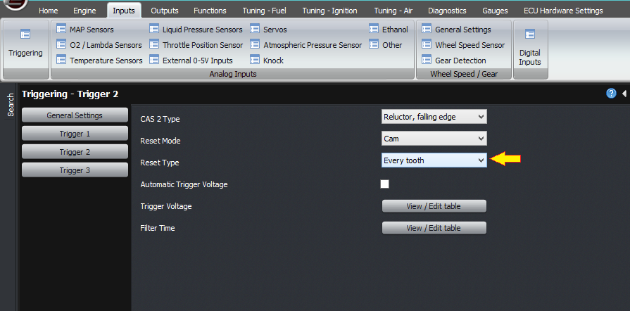 reluctor input. Then select the automatic voltage threshold option. The next feature is the filtering. In general, you