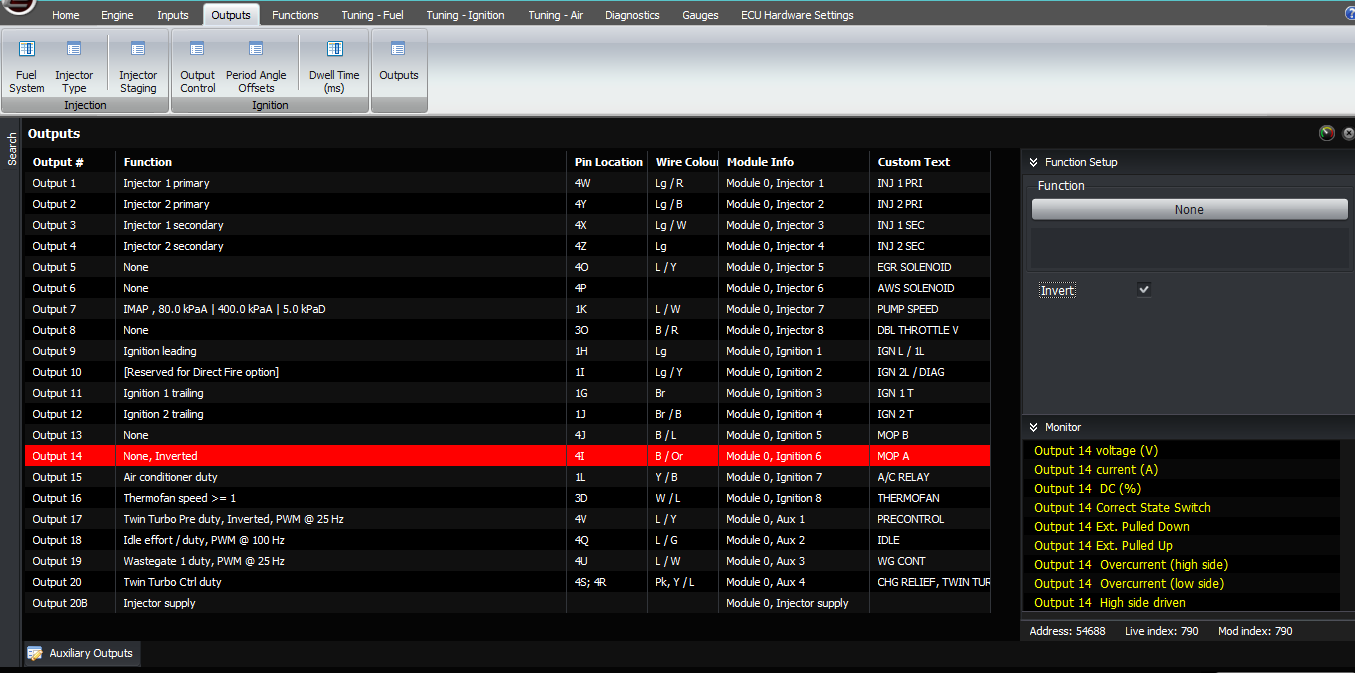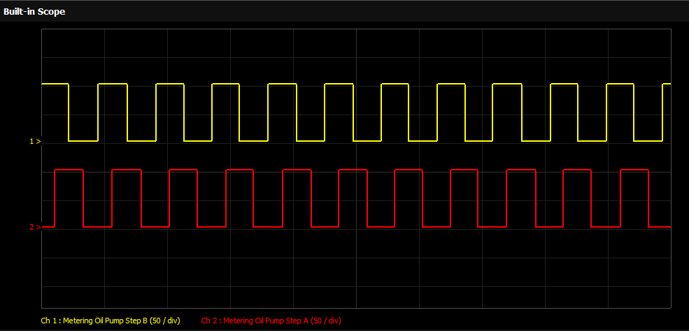 (output 13 = Metering Oil pump Step B, output 14 = Metering