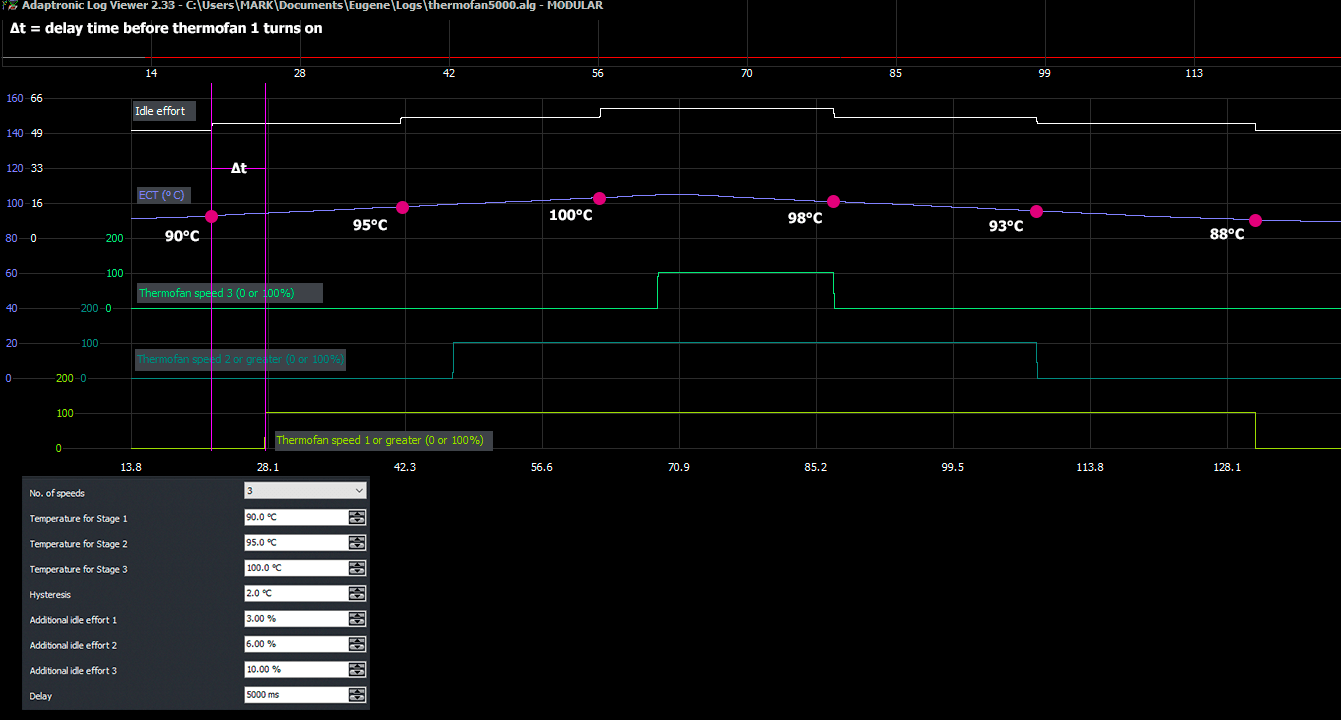 with the additional electrical load from the fan. The final setting is the delay. When the coolant