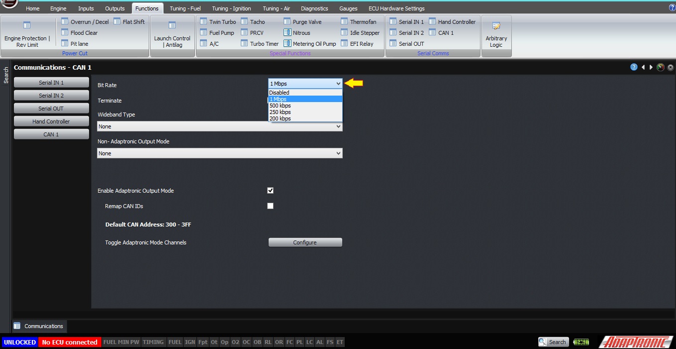Enabling of the Adaptronic CAN output