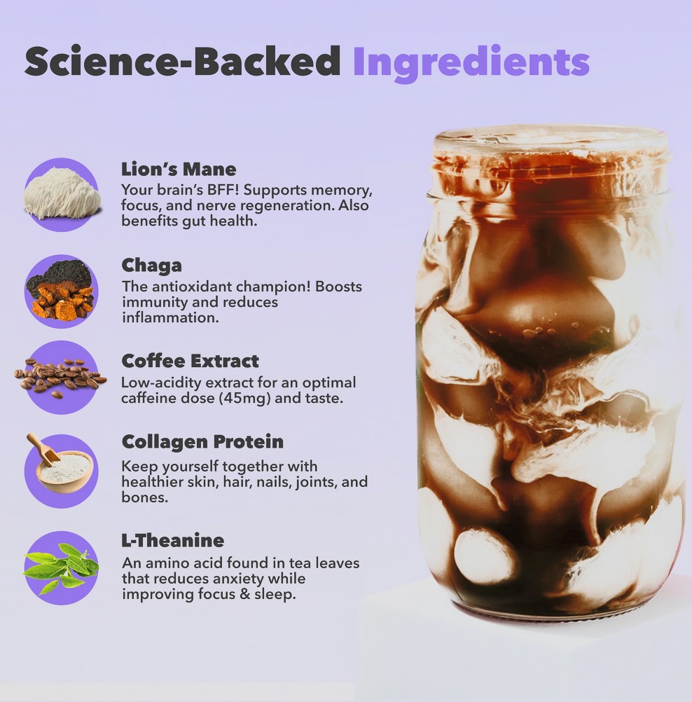 If you're someone who's looking to cut down on caffeine, Everyday Dose might just be what you need. With only about a third of the caffeine content of a regular cup of coffee, it includes a mix of ingredients like l-theanine, lion's mane extract, and collagen peptides. These add not only to its nootropic benefits but also to overall health.