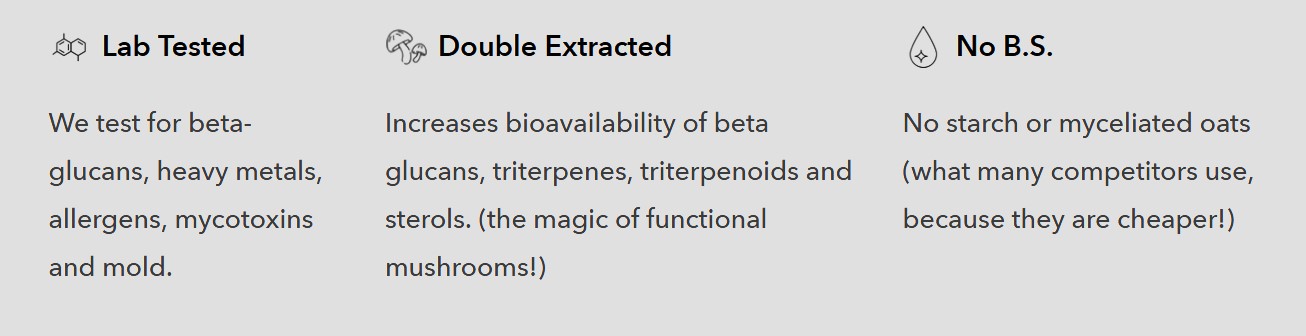 Everyday Dose is an organic powdered blend that thoughtfully combines Lion's Mane, Chaga, collagen, Suntheanine, and coffee extract. This blend is not entirely caffeine-free, but it notably contains only a third of the caffeine found in a standard cup of coffee. The addition of coffee extract mainly serves to subtly mask the mushroom flavor, making it more palatable.