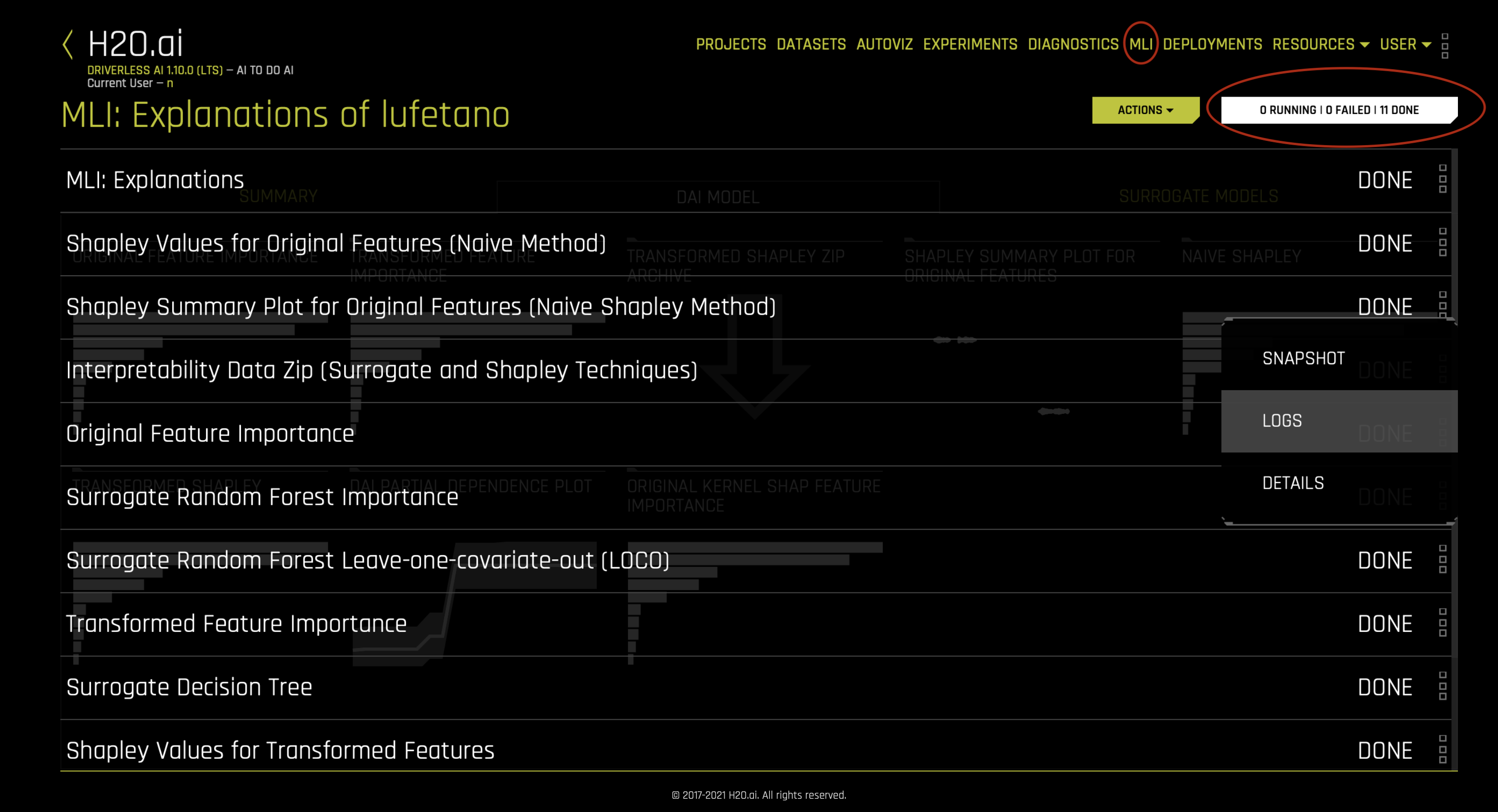 • Auto Viz Failures: Auto Visualization Logs on datasets can be accessed from the GUI. A full detailed stacktrace is also available in the h2oai_server.log file in ./tmp folder of DAI that requires admin access.