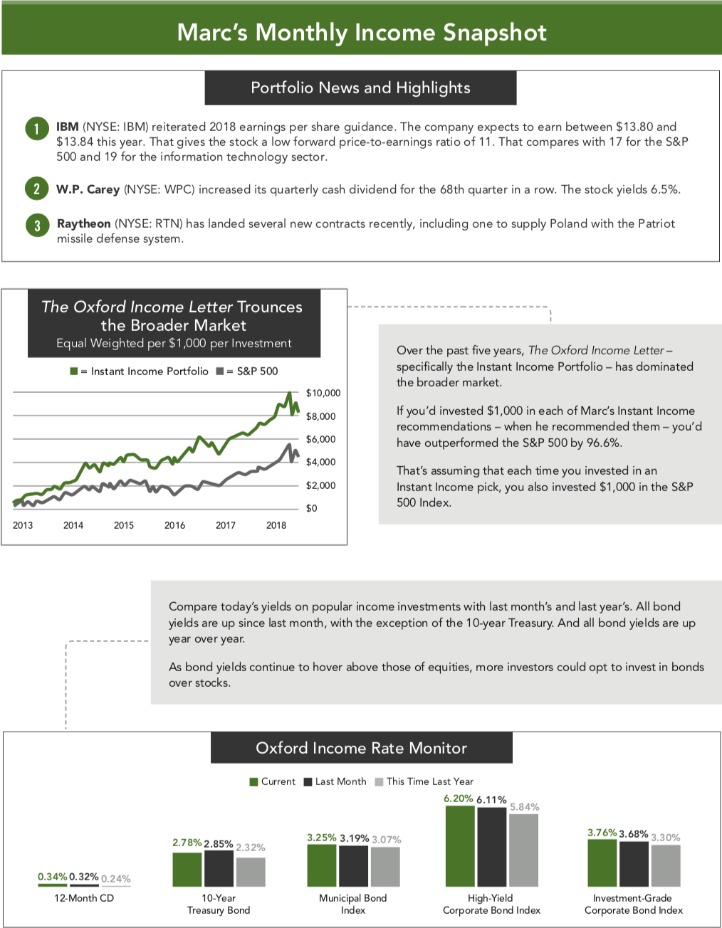 This April 2018 edition is a special one. It marks the five-year anniversary of The Oxford Income Letter. I’ll have more on this big milestone later in the issue.