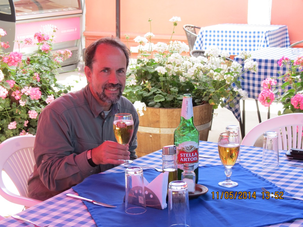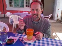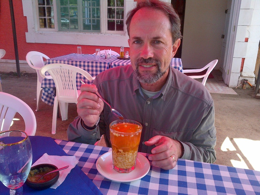 ![]() Robert enjoying a Mote con Huesillo, a drink made with dried peaches (huesillo) and wheat (mote) |