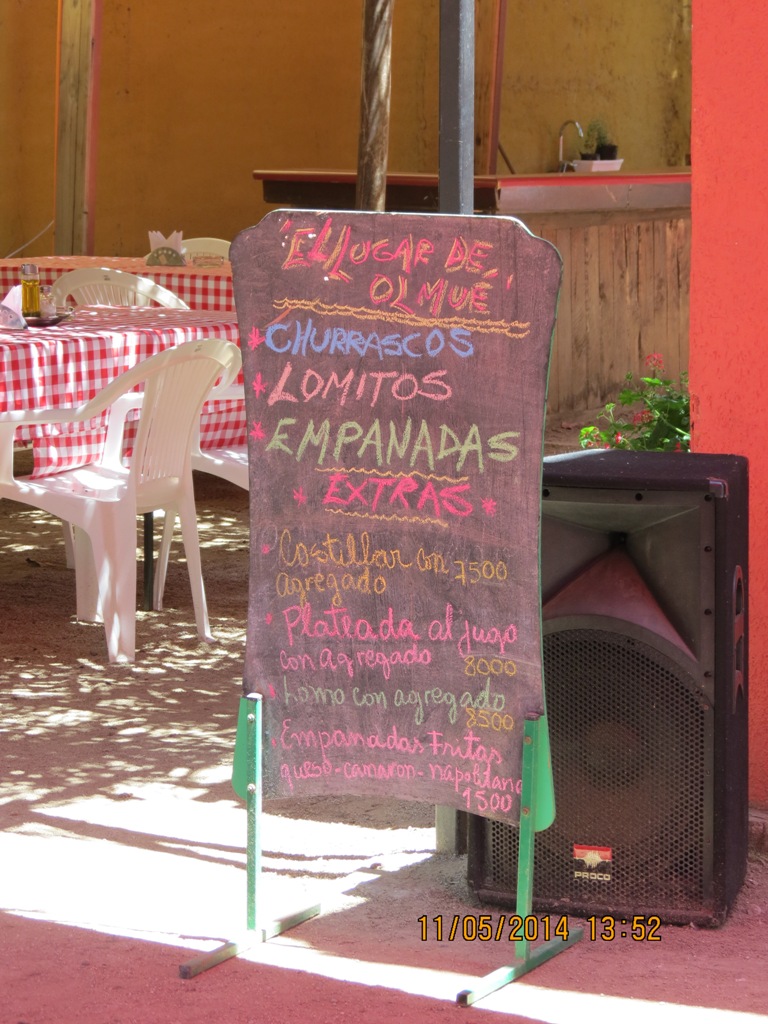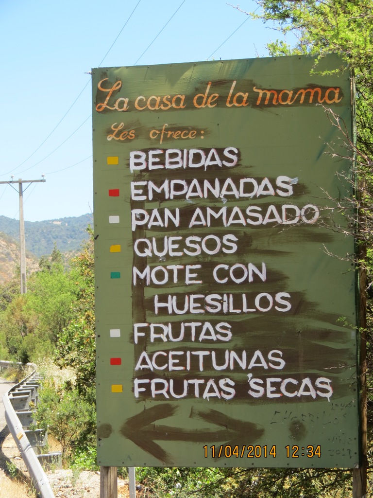 | Typical food sign en route from Santiago to Olmué - see below for what "Mote con Huesillos" is... |