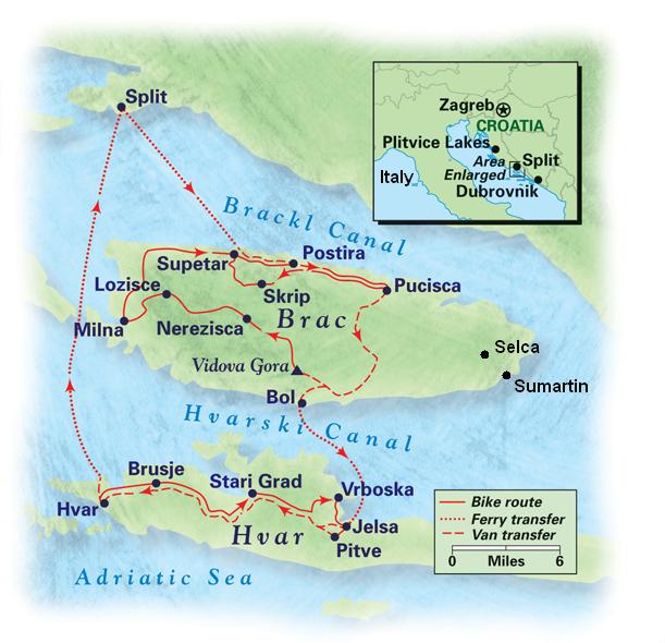 Bicycle Tours) cycling on the islands of Brač and Hvar, just off the