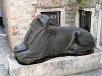 A black sphinx, one of presumably 13