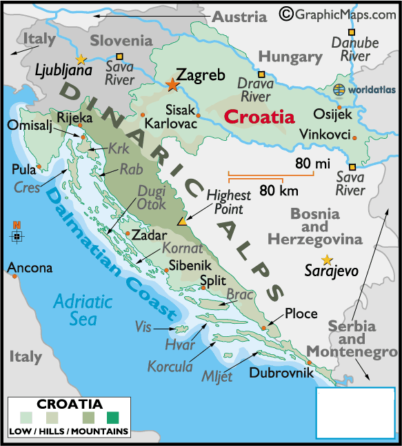 came from (Selca). The birding tour was quite interesting and got us out to a number of different parks and habitats we might not have explored on our own, including the island of Pag (known for its rocky terrain, salt flats, and cheese), Vransko Jezero, Krka National Park, the area surrounding Trogir, the Cetine river (river, its source, and the delta), and lastly - and maybe the highlight - a day boat trip out to Lastovo. We were fortunate also to be joined on the tour by Ray Tipper, a bird photographer and guide with Avian Adventures, who was scoping out the area for a tour offering through his company next year. Also need to mention here the very helpful ladies of Val Tours - Nataša Opanović (owner/organizer extraordinaire!) and Natali Vilić. Returning to Brač felt like "coming home" after our visit there last year. We came across on the ferry with our rental car, not without a little excitement (I thought the ticket agent in Split said "line up at 12:30" - what he really meant was "ferry LEAVES at 12:30"...). The 12:30 ferry was not on the schedule, so we had momentary fears that we were headed to Italy...but we went safely to Supetar. We once again stayed in the town of Postire - Supetar being a little busy...and explored the island, visiting Selca, Sumartin, Pučišća, Supetar, and Vidova Gora (the highest point on the islands). This page is the "home"; see the links below for photo pages for Zadar, Plitvice, birding tour, Brač, etc. Click the map on the left for a larger version.