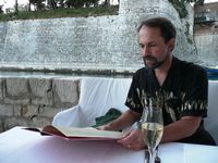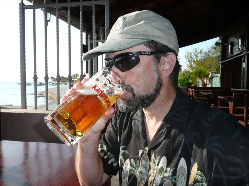 Back in Zadar ... it was a short walk from Villa Valentina to the beach, where we could enjoy some Karlovačko (most excellent Croatian beer) |