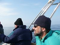 | We're on a boat! Yes, it was sunny, but cool on the water |