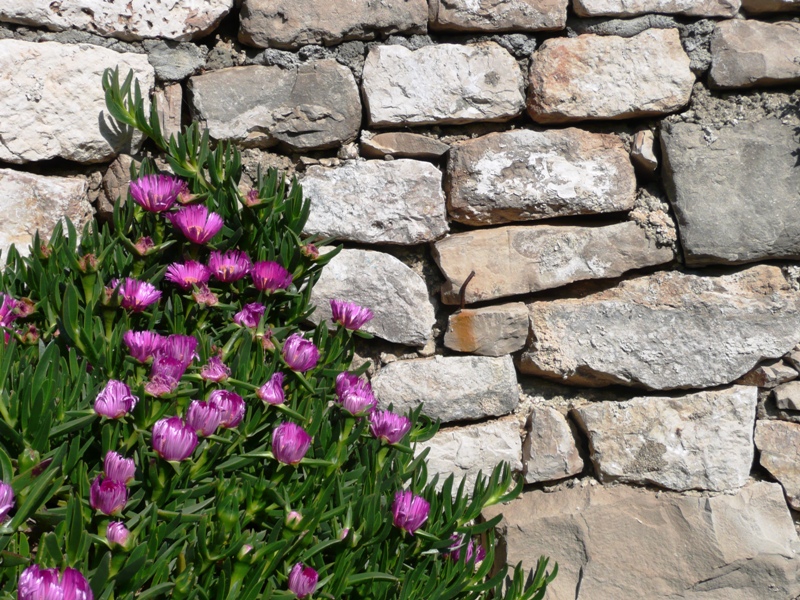 Ice plant and rocky walls define the