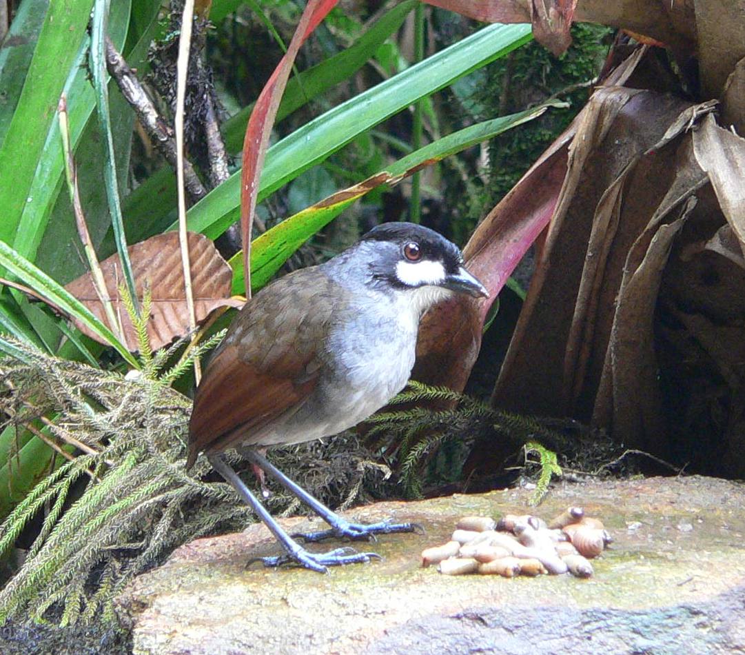 in the world." -- Mark Pretti In September 2011 we rejoined nature tour leader Mark Pretti on a birds and natural history tour of southern Ecuador. This trip was the follow-on to the tour of northern Ecuador we had done in September 2010. We had also been to Ecuador back in 1998 - before US dollars replaced the sucre and ecotourism took off - visiting the eastern lowlands of Amazonias with Victor Emanuel and Peter English. We arrived a day early in Quito, to guard against any travel delays, and thus had a full day to devote to sightseeing in the city. We enjoyed a city tour with a local guide, getting to see several fine churches as well as the lovely Plaza de la Independencia, from where we had a surprise sighting of the Ecuadorian Presidente, Rafael Correa. We began the birding trip the next day in the dry interior of Loja Province, a relatively short flight from Quito, getting some great looks at the big volcanos of Antisana and Cotopaxi from the airplane. Our first stop was the Jocotoco Foundation's Tapichalaca Lodge in the south, home of the Jocotoco Antpitta (see photo above left) as well as other cloud forest species including the (habituated) Undulated Antpitta. Outside of Quito (9200 ft elevation), Tapichalaca was our highest destination at 8200 ft. From there we also visited lower elevations down past Valladolid, about 5200 ft, seeking lowland and Amazonian species, especially Río Marañon endemics. From Tapichalaca we headed to the eastern slope of the Andes and Copalinga Lodge, a privately-owned, truly special lodge. Not only did we see marvelous birds there including Spangled Coquette and Wire-crested Thorntail hummingbirds, but also saw first-hand the lodge's own hydro-electric plant and heard how it was engineered and managed. They may be off the grid, but they live in style! Some heavier than expected rains on our Copalinga nights caused some minor landslides and had us toy with the pleasant thought of being "stuck", but our driver Edgar wisely parked our vehicle on the other side of the slides, so we only had to walk through a bit of mud and water to get out. Leaving Copalinga we travelled to the western slope of the Andes and the Jocotoco Foundation's Buenaventura Reserve. Mark described Buenaventura as one of the "birdiest spots in the country", and we'd have to agree. At Buenaventura we saw not only the rare and endangered El Oro Parakeet, but many other species including the truly bizarre Long-wattled Umbrellabird, the skulky (but beautiful-voiced) Song Wren, and the beautiful Rose-faced Parrot. Our final stop was in the tropical deciduous forest (TDF to Mark's legion of birders) of the Jocotoco Foundation's Jorupe Preserve. After well over a week in cloud forest, the warmth and dryness of Jorupe - much like our home area of southeast Arizona - was most welcome. On the grounds and trails of the lodge, we sought and found Tumbesian (regional) endemics including Pale-browed Tinamou, Gray-cheeked Parakeet, and Watkin's Antpitta. A brief note on cuisine...the food was quite good nearly everywhere. A variety of lovely fruit juices were available at every meal, encompassing fruits we're familiar with (pineapple, watermelon, melon, berry) to those that are virtually unknown in the US - tomate de arbol (tree tomato) and a couple whose names I can't even recall! The "staple" condiment ají was at almost every meal - save for a couple of breakfasts at Jorupe where the staff seemed bemused that we would ask for it outside of lunch or dinner. It was similar to salsa, but relied on cilantro, garlic, and vinegar for flavor instead of just chile peppers for heat. Every lunch and dinner was three-course - a starter (lovely soups, ceviche, etc.), main plate (beef/chicken/fish/shrimp, rice, vegetables, plantains), and dessert, with lunch being the biggest meal of the day. Although we ate quite a lot, overall we didn't do ourselves too much harm - well except for maybe the amount of shrimp we ate, which likely trashed our cholesterol counts. We and the rest of our party also did our best to support the local Pilsener brewery, and also enjoyed some nice Chilean wines here and there. There are seven pages linked below - this home page, five more of photographs, and one containing videos, mostly of hummingbirds. See also the full itinerary [pdf] from Mark Pretti. Enjoy! |