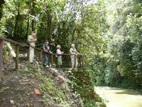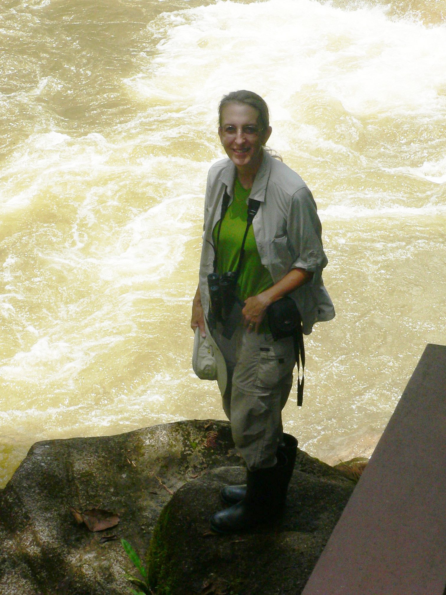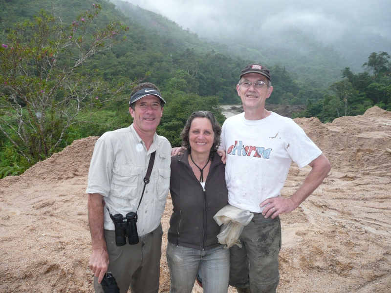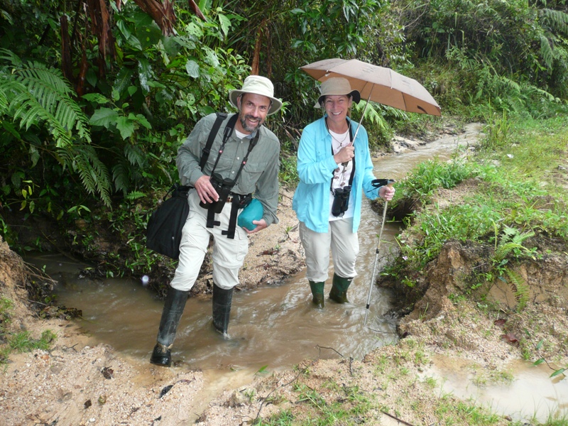 Robert and fellow birder Linda doing some stream boot-washing after crossing the slide zone |
