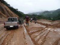 | A couple of small overnight landslides would have interfered with our final departure from Copalinga... |