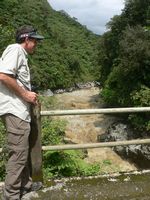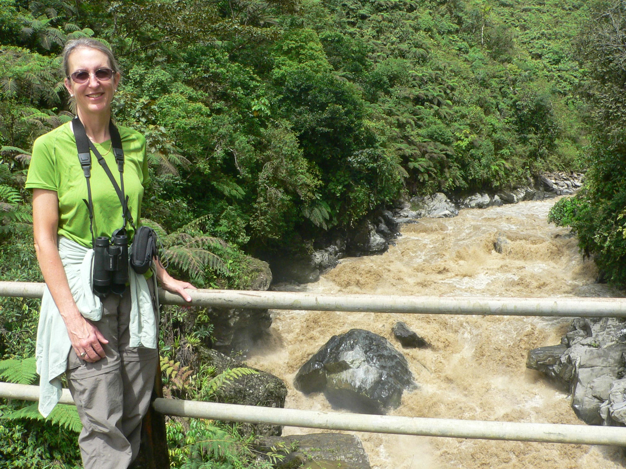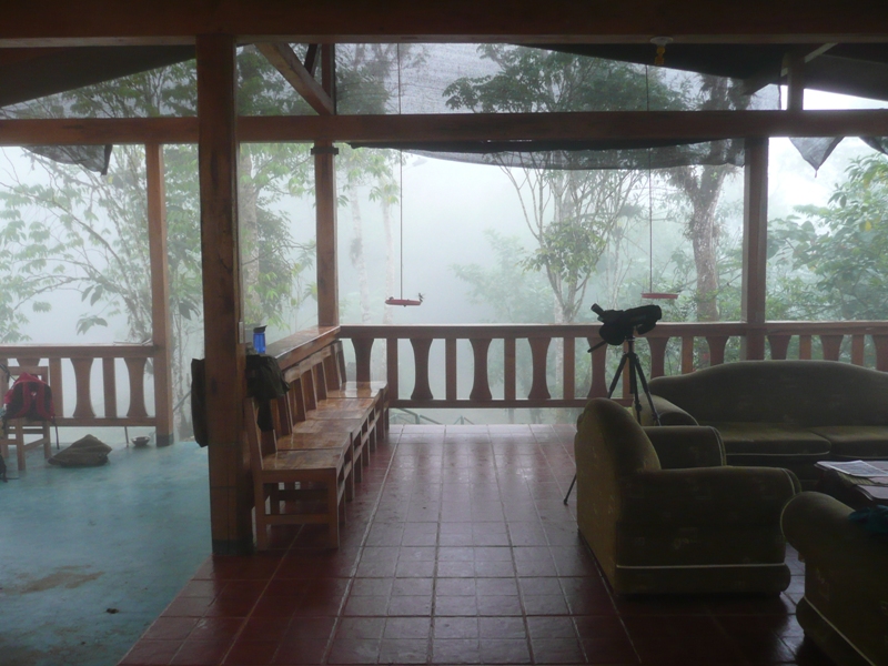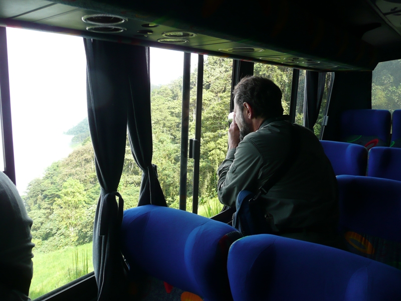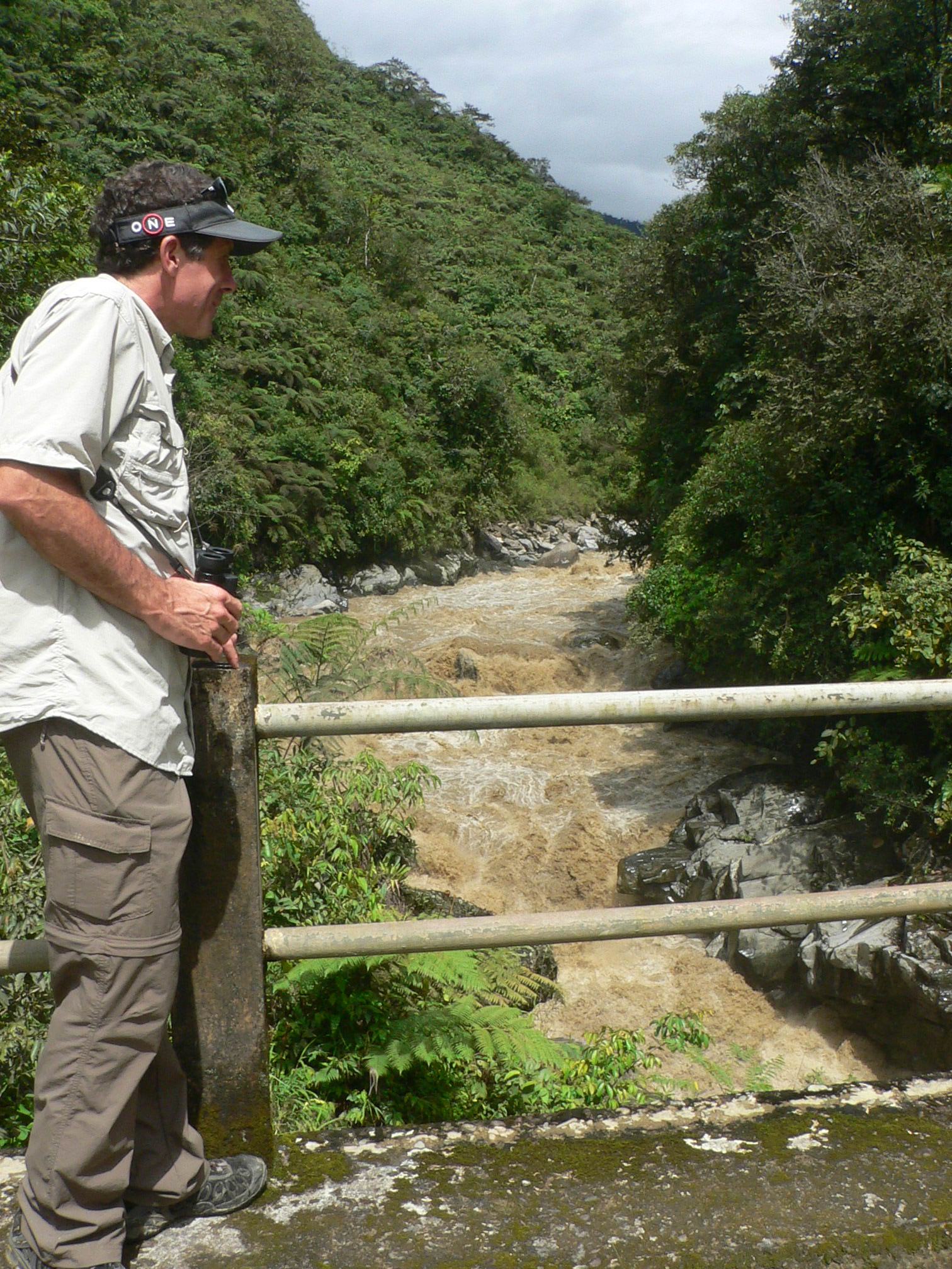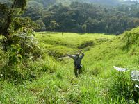 Robert running downhill after seeing the El Oro Parakeet...and as Mark said, it's a good shot of some of the only sunlight during our stay! |