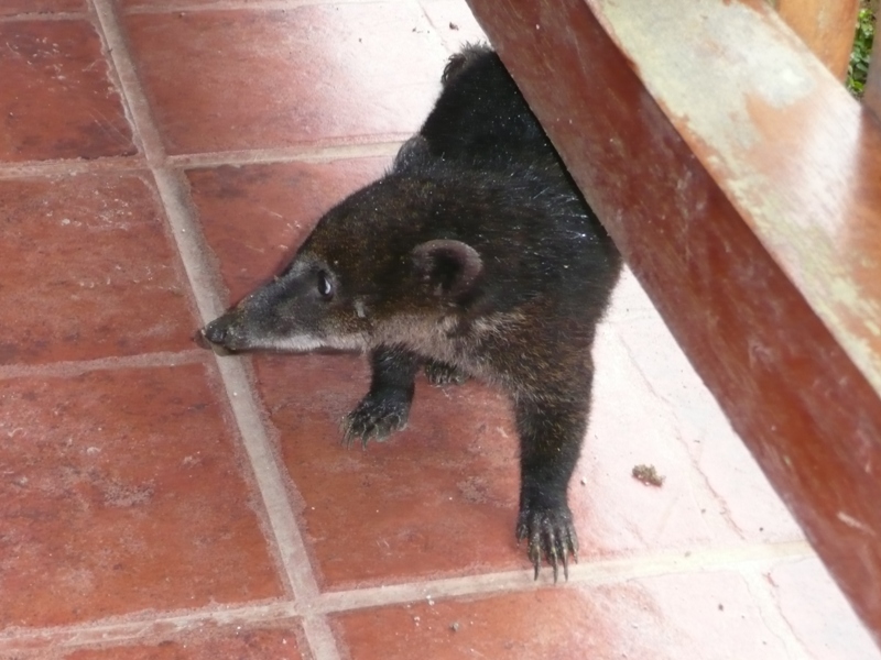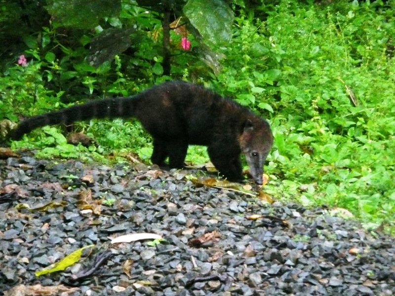 | A troop of White-nosed Coatis roamed around the dining area at Buenaventura |