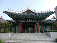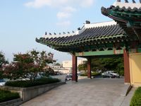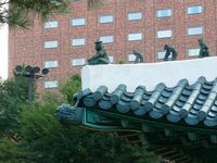 what to order!). Many thanks to Sok Kim (the regional C4ISR Support Manager) and Ray Perez for taking such good care of us on this visit! For my birding friends, that was not the focus of this trip, but saw a few goodies nevertheless, including azure-winged magpie, the ubiquitous black-billed magpie, long-tailed tit, eastern great tit, an assortment of herons and egrets, etc. Very nice wooded grounds at the Shilla Hotel were good for birding - when it wasn't raining! The birding looked good along the Han River and the mudflats out to the airport at Incheon, but those will have to wait for an actual birding trip. We also had the excitement of typhoon Kompasu passing through one day - didn't seem bad from the hotel but a subsequent walk and drive revealed many uprooted trees, and there were major power outages in much of Seoul that day. |