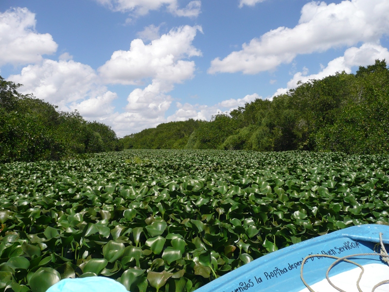 ...but where we were headed (a lagoon) was completely choked with water hyacinths! |